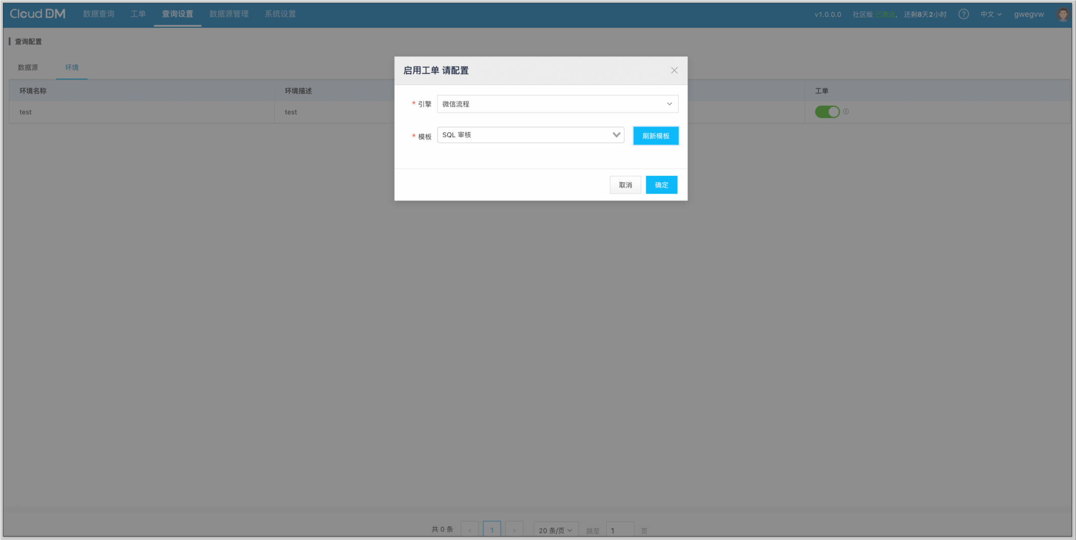 - 在 环境 页签下,为对应的环境开启工单功能。