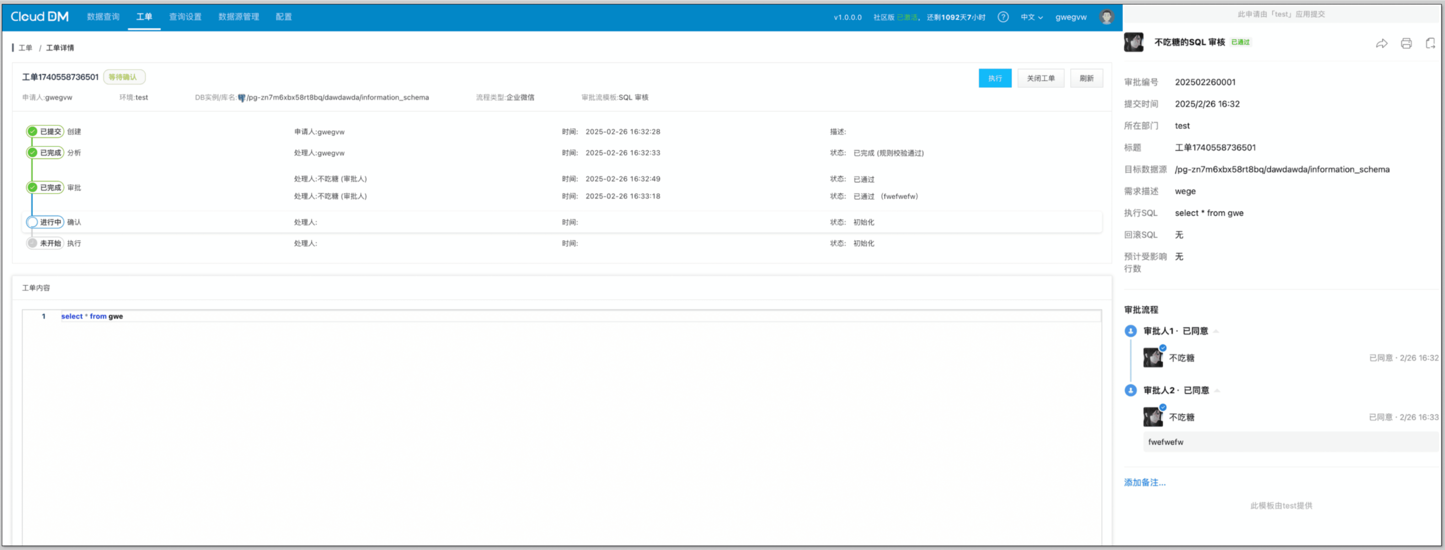 使用 CloudDM 和企业微信流程化管理数据库变更审批