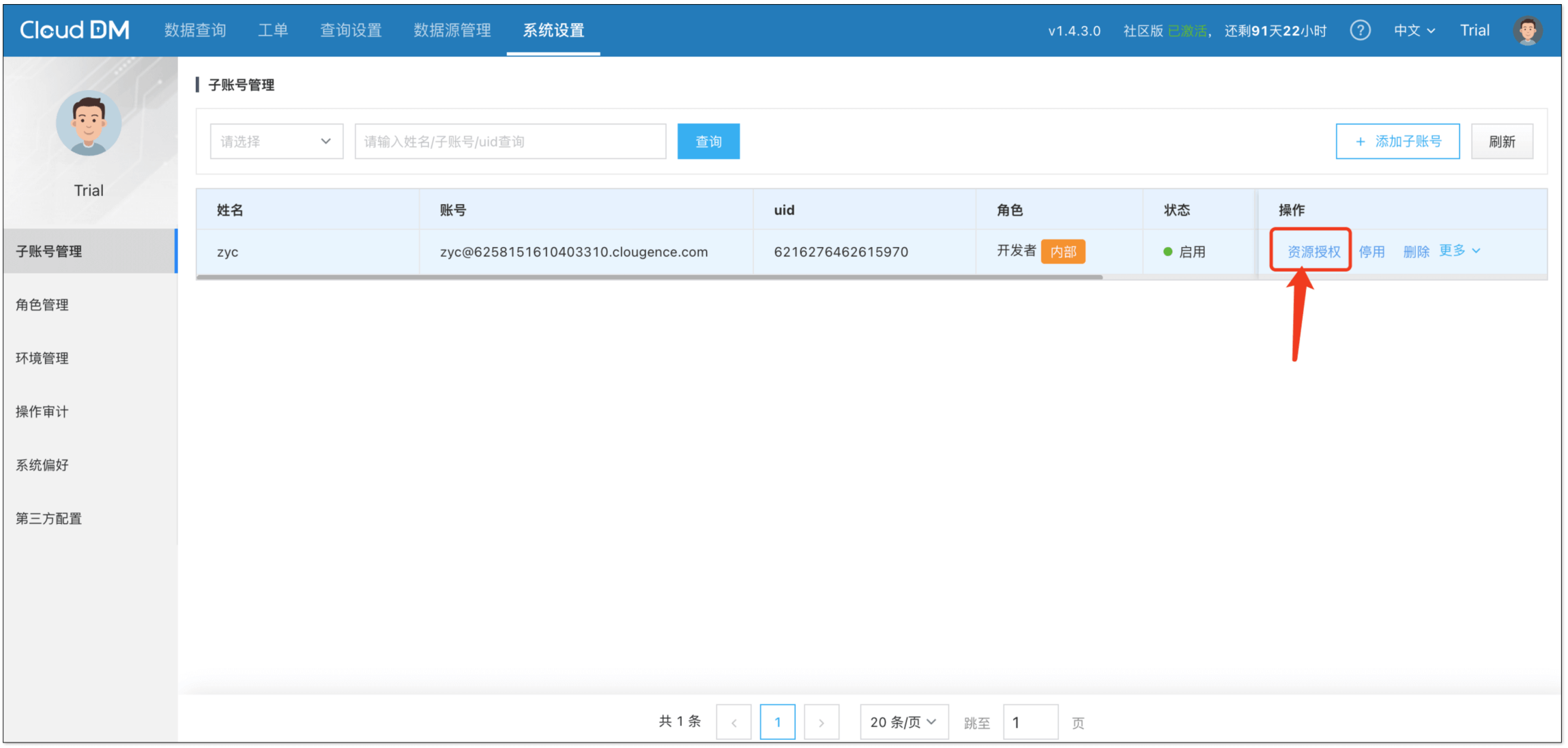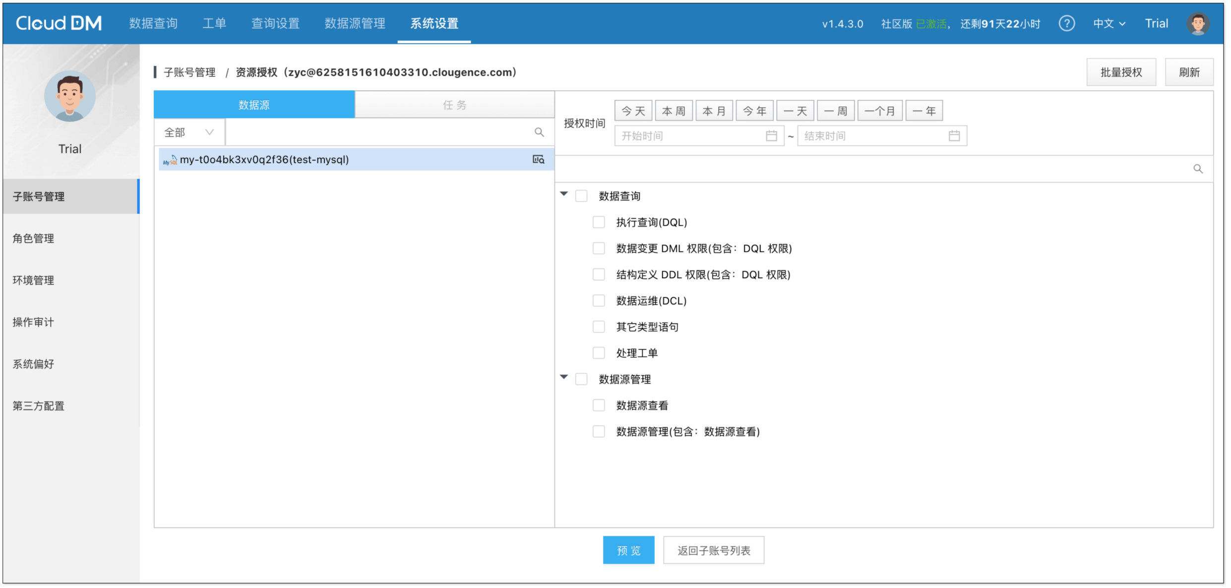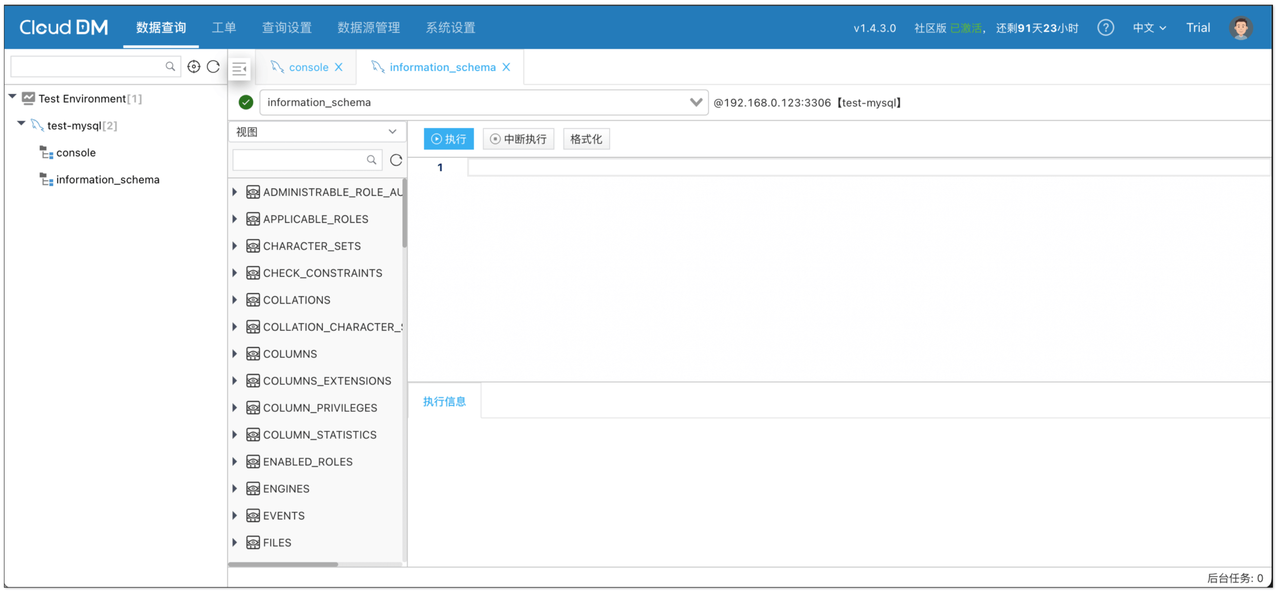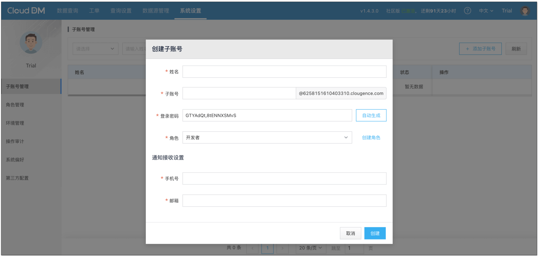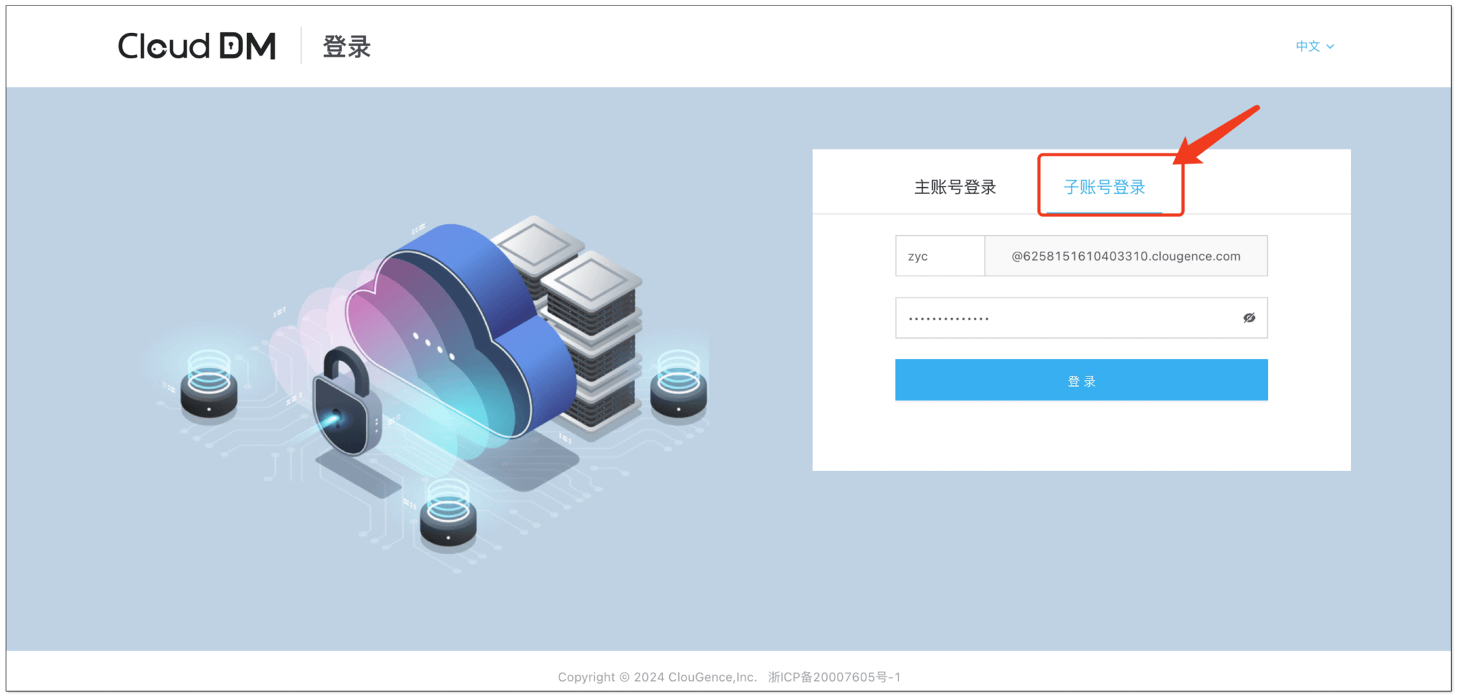 - 默认账号: test@clougence.com