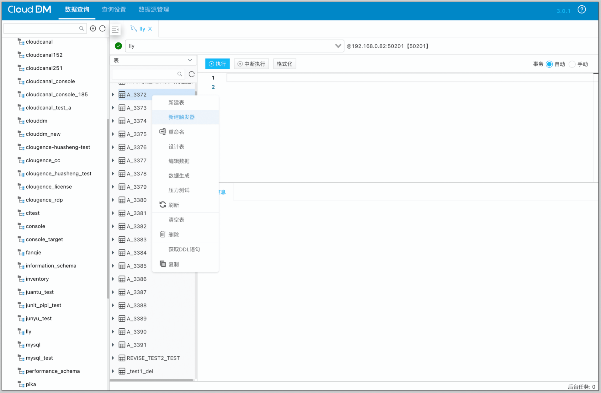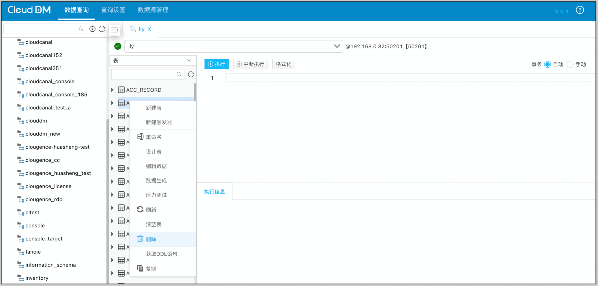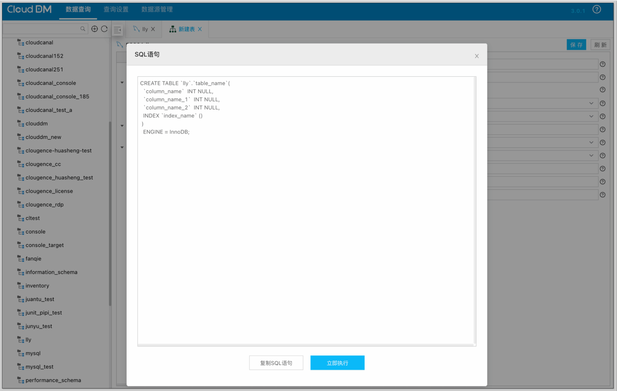 目前,CloudDM 支持各类数据库表的管理操作,包括创建表、删除表、修改表、清空表,同时对 MySQL 的 DDL 支持比较齐全,可以满足各类场景。