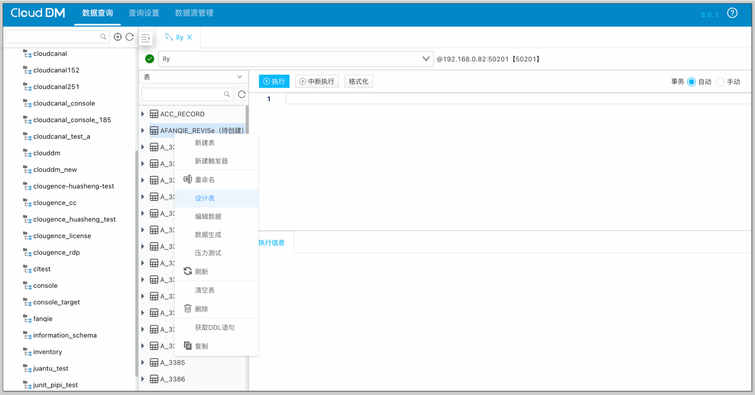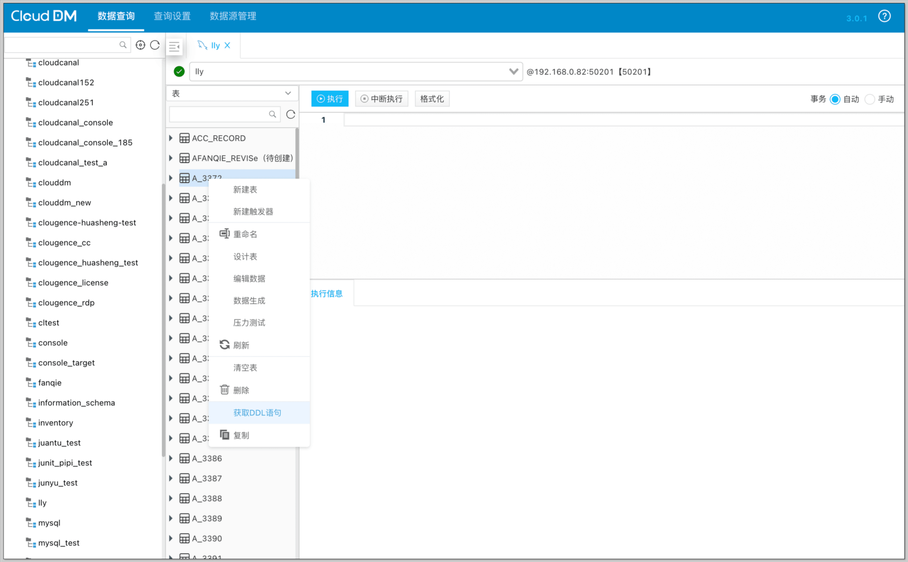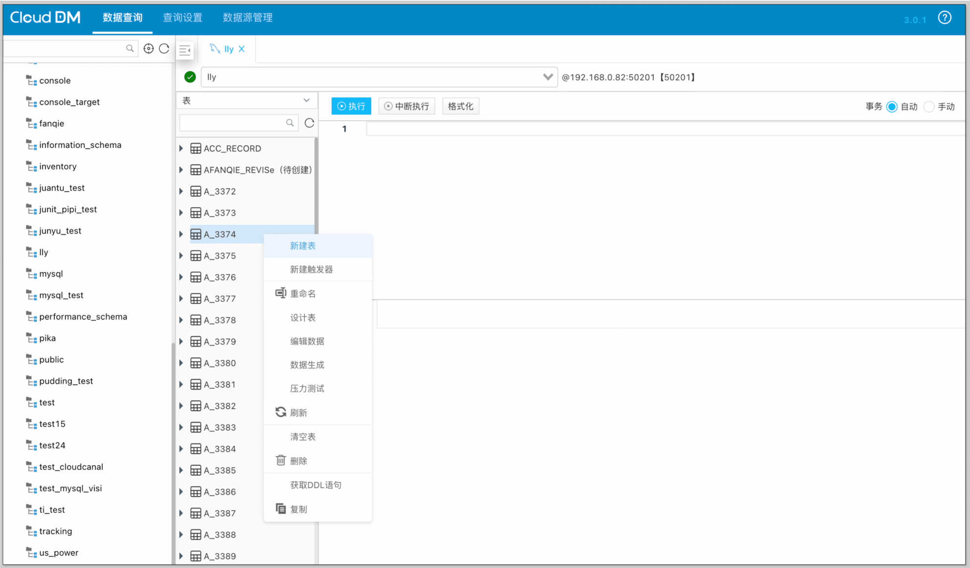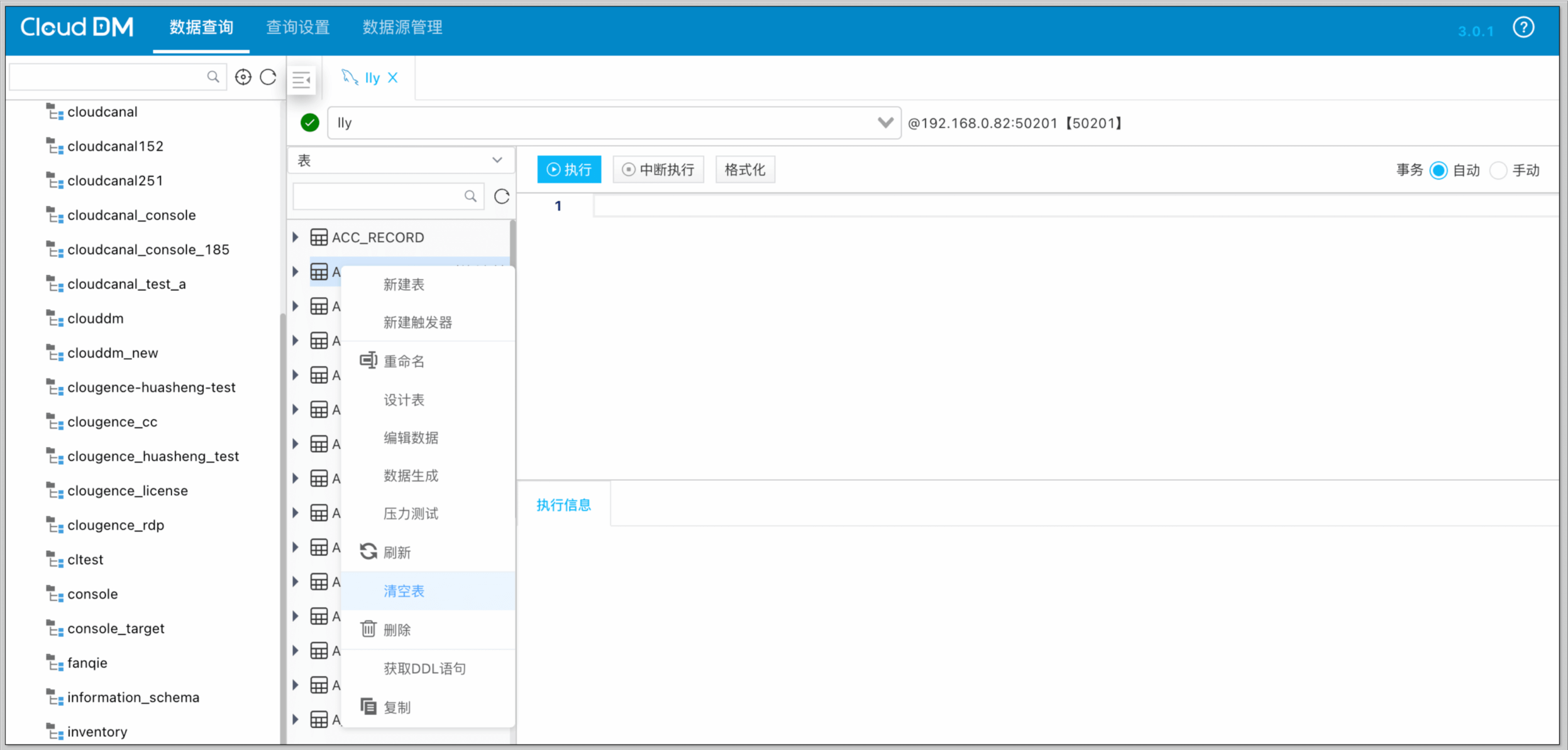 目前,CloudDM 支持各类数据库表的管理操作,包括创建表、删除表、修改表、清空表,同时对 MySQL 的 DDL 支持比较齐全,可以满足各类场景。