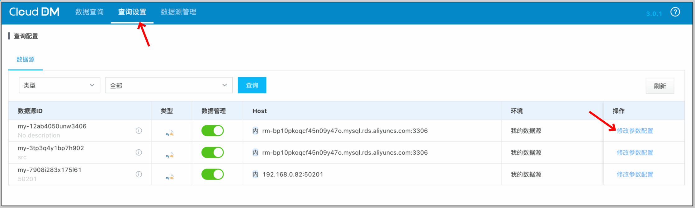 在 查询设置 中,可以通过 修改参数配置 对连接信息进行修改。