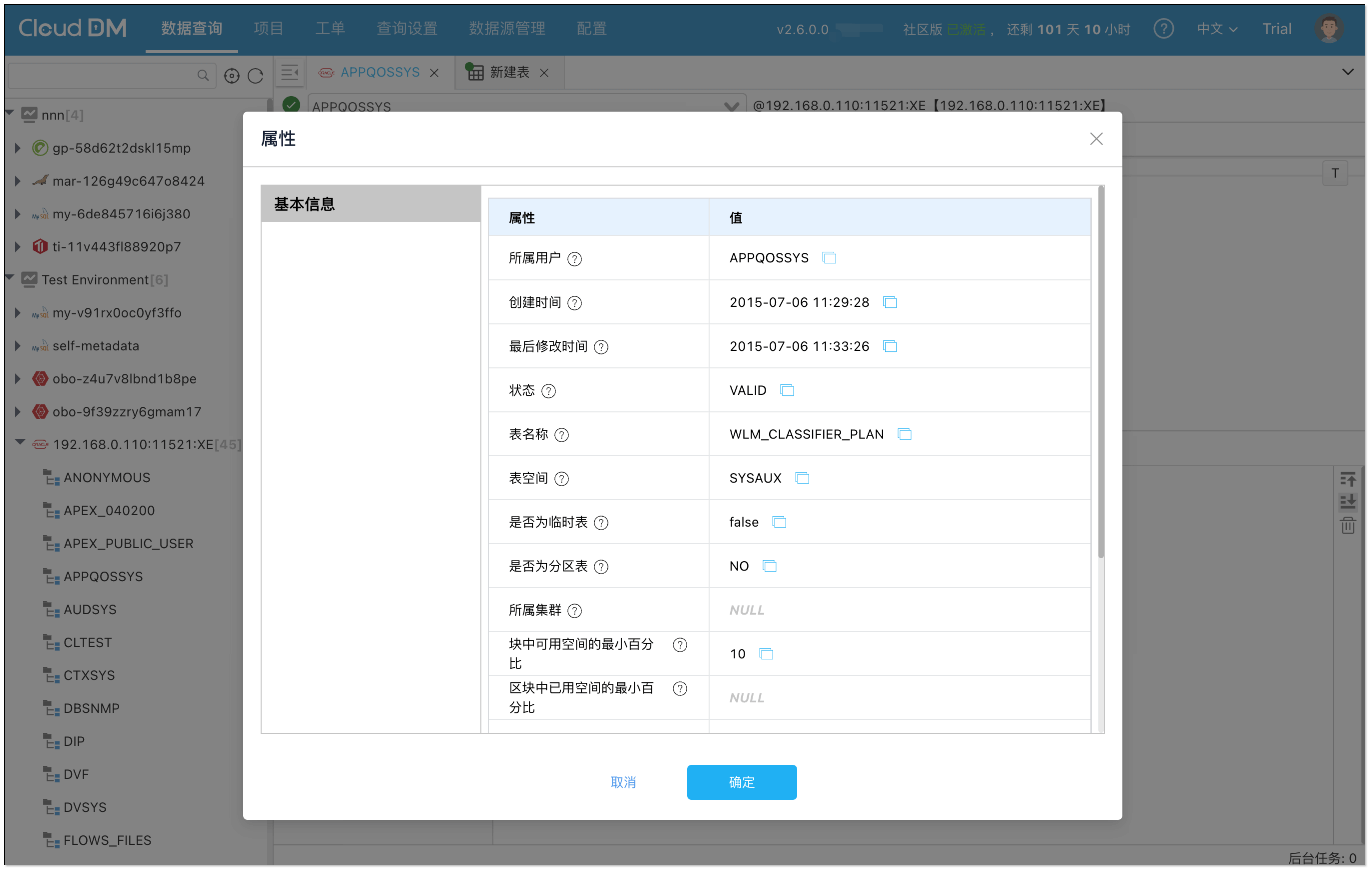 - 支持查看数据源表、视图、存储过程、函数、触发器等属性。